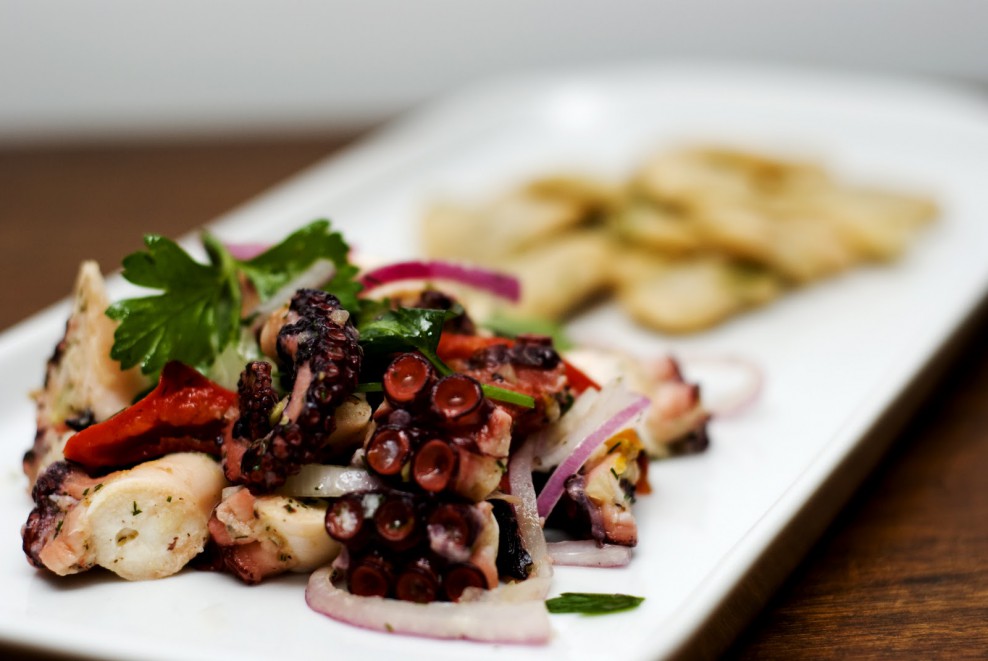 This spicy seafood salad is served with a chilli garlic dressing and is really fast to prepare.