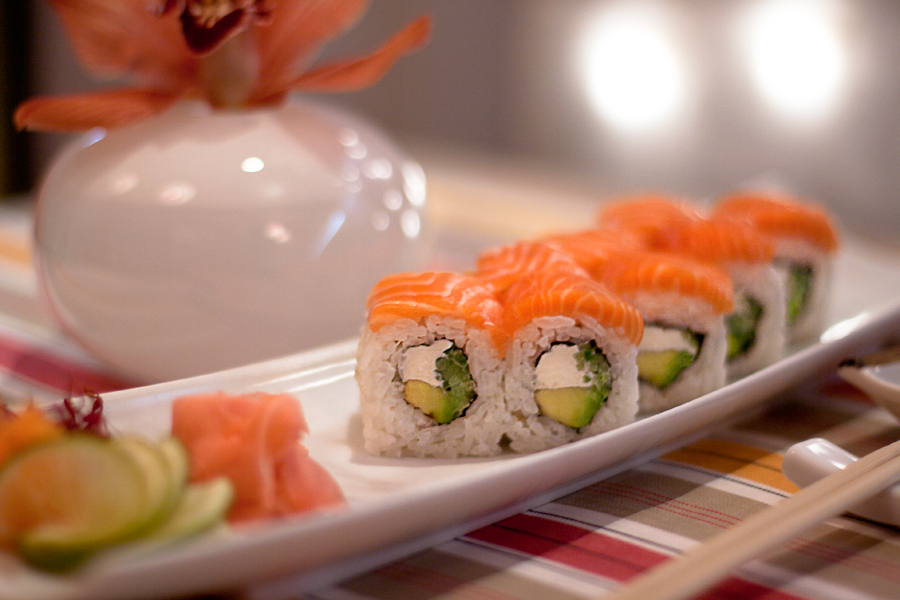 Salmon is a relatively new ingredient for sushi. Salmon is an oily fish that has a mild to strong flavor along with a rich and semi-soft texture. It is very high in omega-3 and vitamin E.